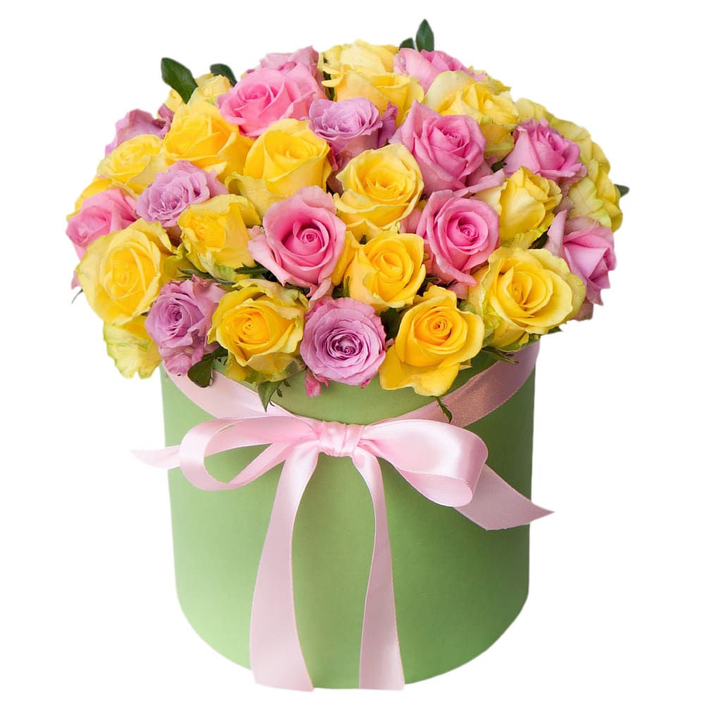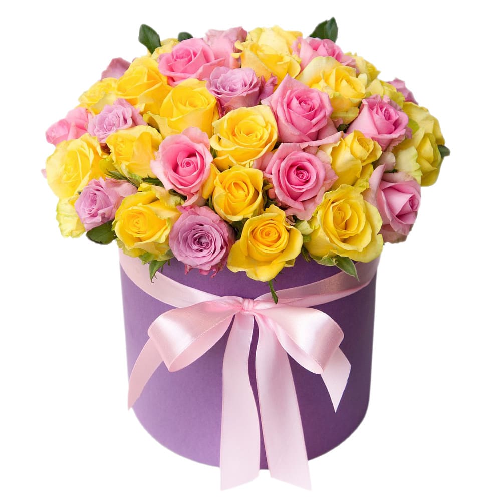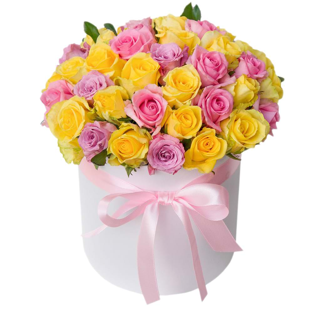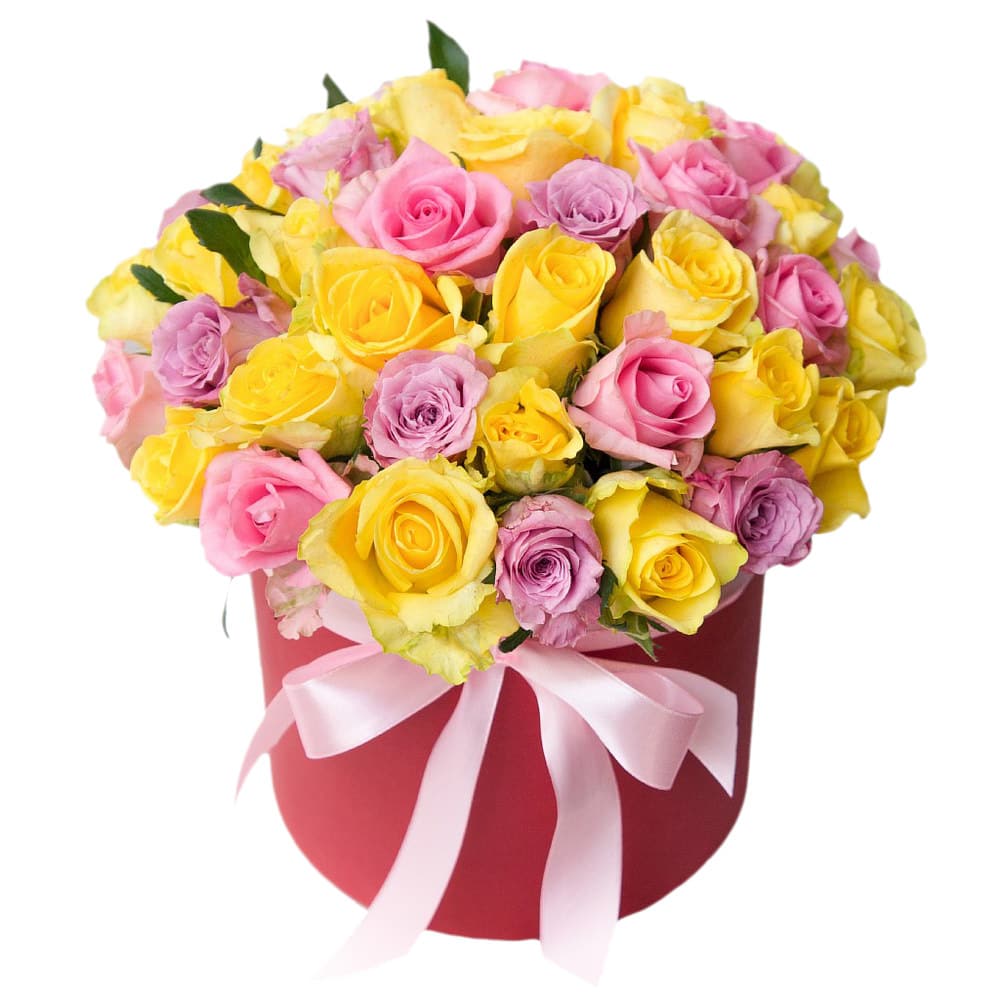 Цветы в коробке «Розы ассорти» с гарантией качества, цены и быстрой доставки!