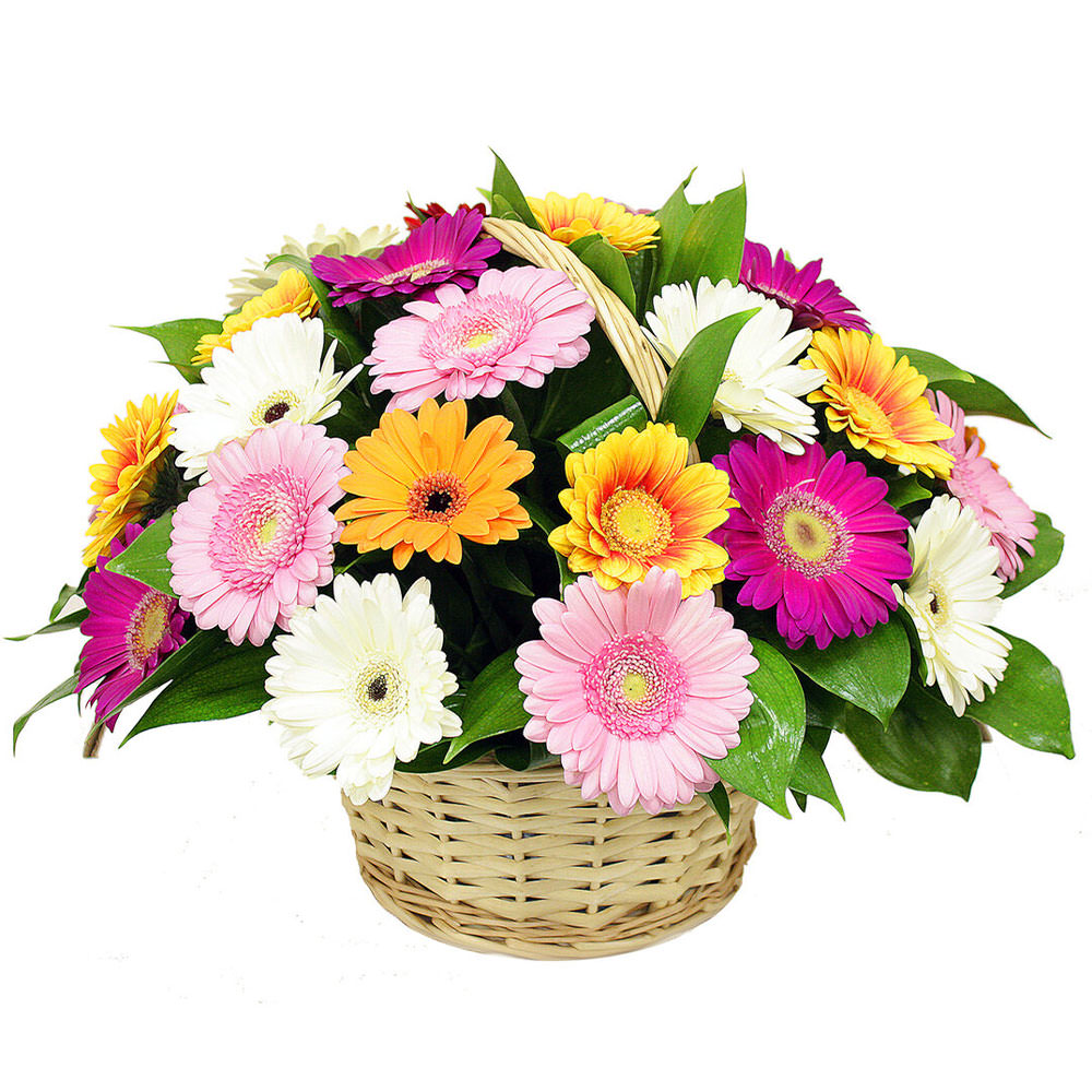Цветы в корзинке «Микс гербер» с гарантией качества, цены и быстрой доставки!